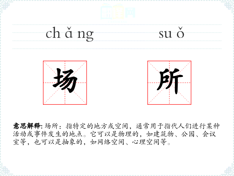 - 反义词:无(因为“场所”是一个中性词,没有直接的反义词)