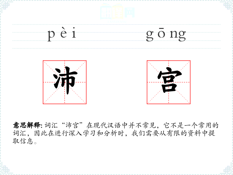 词汇“沛宫”在现代汉语中并不常见,它不是一个常用的词汇,因此在进行深入学*和分析时,我们需要从有限的资料中提取信息。