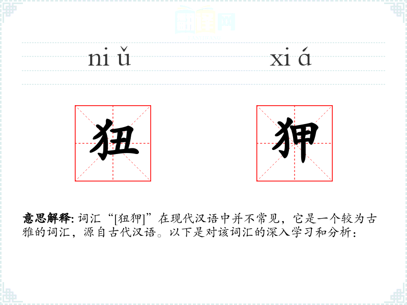 词汇“[狃狎]”在现代汉语中并不常见,它是一个较为古雅的词汇,源自古代汉语。以下是对该词汇的深入学习和分析: