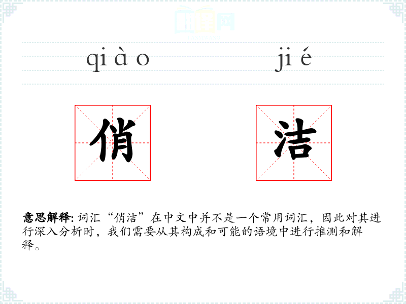 词汇“俏洁”在中文中并不是一个常用词汇,因此对其进行深入分析时,我们需要从其构成和可能的语境中进行推测和解释。