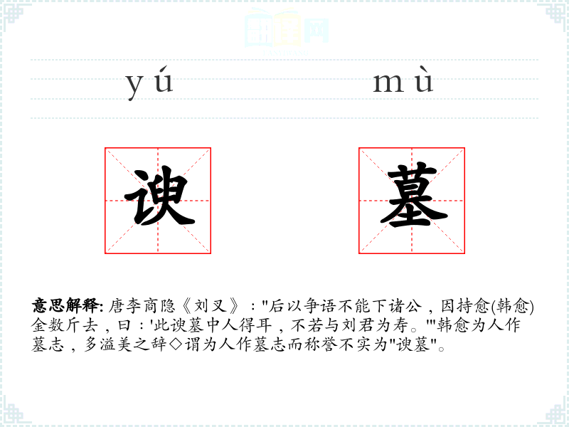 ◇谓为人作墓志而称誉不实为"谀墓"。