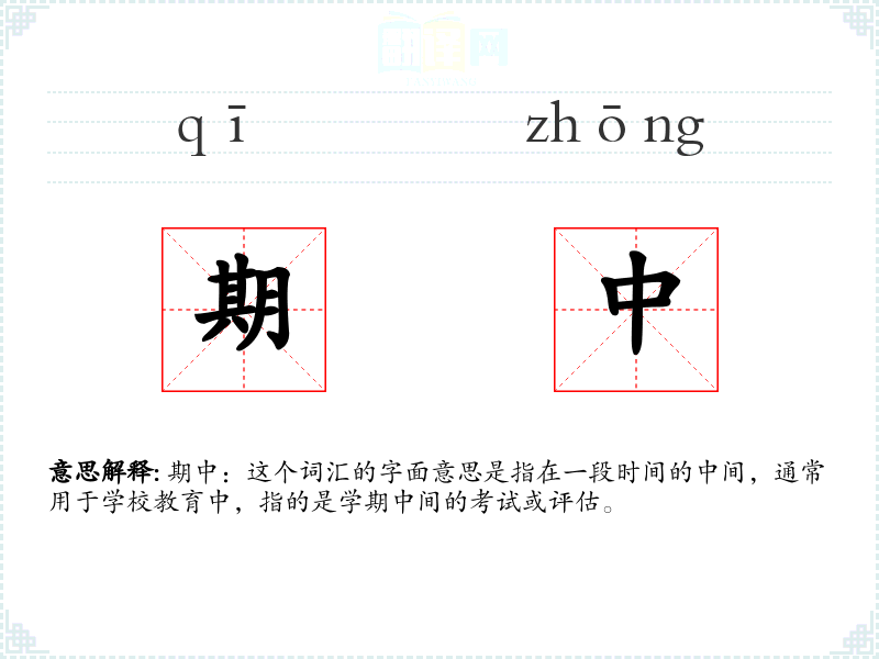 - 专业领域:在教育学或学校管理中,“期中”是一个重要的术语,用于规划和评估学生的学*进度。
