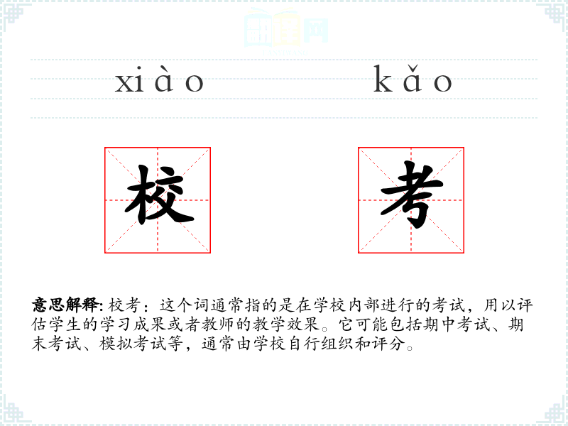 校考这个词由“校”和“考”两个字组成。在古代汉语中,“校”有比较、校对的意思,而“考”则有测试、考核的含义。随着时间的推移,这两个字结合在一起,形成了现代汉语中指代学校内部考试的词汇。