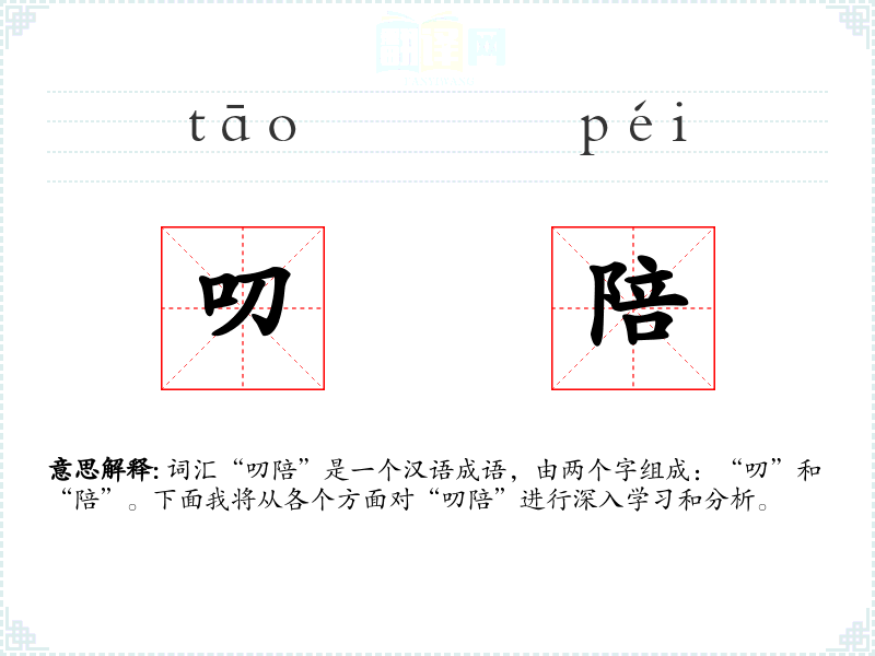 词汇“叨陪”是一个汉语成语,由两个字组成:“叨”和“陪”。下面我将从各个方面对“叨陪”进行深入学*和分析。