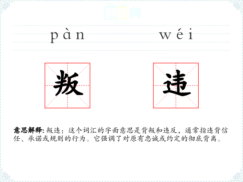 - 专业领域:在法律或政治学中,“叛违”可能指违反法律或宪法的行为,如叛国罪。