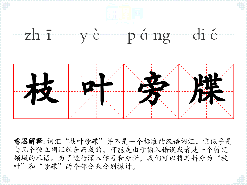 总结来说,“枝叶旁碟”这个组合词汇需要更多的上下文信息来准确理解和分析。如果“旁碟”是一个特定领域的术语或误拼,那么它的意义和用法将取决于具体的背景和语境。