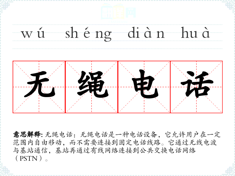 "无绳电话"的意思解释、无绳电话是什么意思由翻译网汉语词典查词提供。
