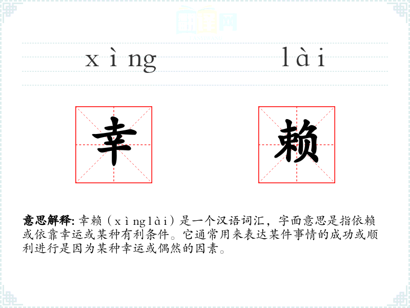 幸赖(xìng lài)是一个汉语词汇,字面意思是指依赖或依靠幸运或某种有利条件。它通常用来表达某件事情的成功或顺利进行是因为某种幸运或偶然的因素。