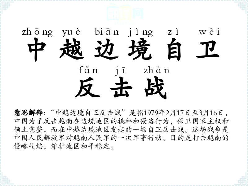 - zhōng yuè biān jìng zì wèi fǎn jī zhàn中越边境自卫反击战