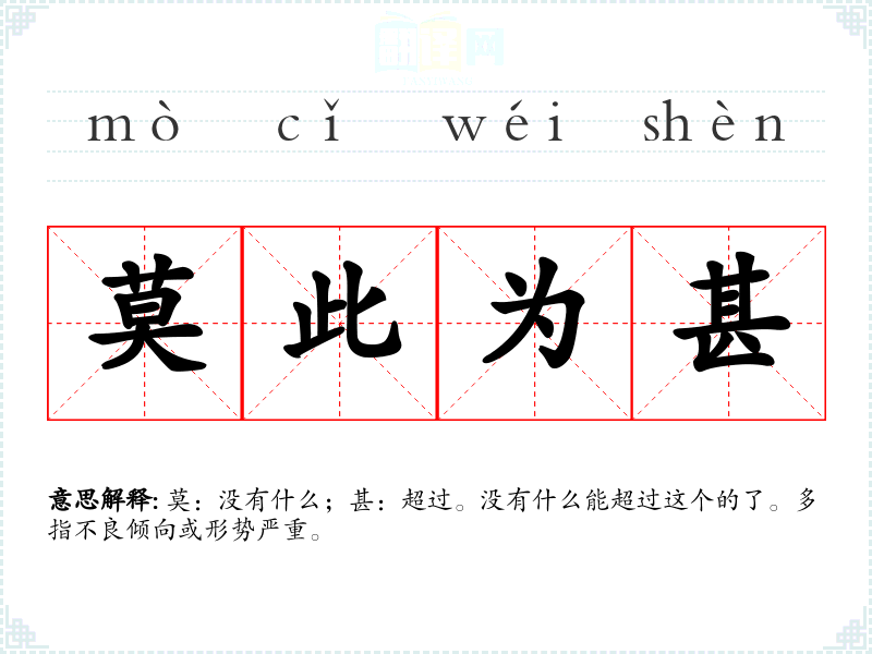 莫:没有什么;甚:超过。没有什么能超过这个的了。多指不良倾向或形势严重。