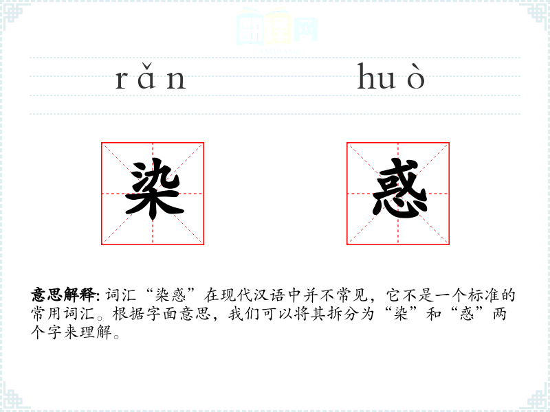 词汇“染惑”在现代汉语中并不常见,它不是一个标准的常用词汇。根据字面意思,我们可以将其拆分为“染”和“惑”两个字来理解。