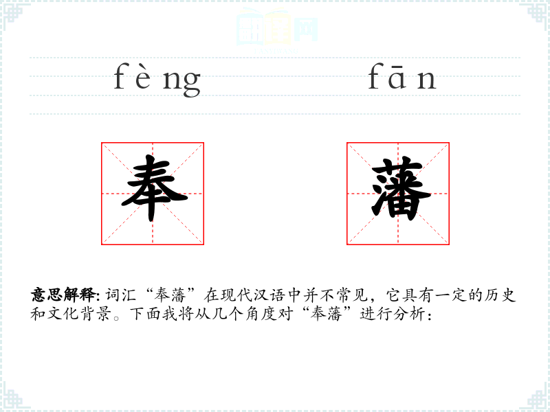 词汇“奉藩”在现代汉语中并不常见,它具有一定的历史和文化背景。下面我将从几个角度对“奉藩”进行分析: