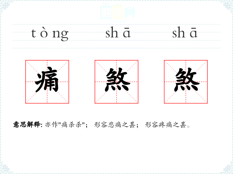 亦作"痛杀杀"; 形容悲痛之甚; 形容疼痛之甚。