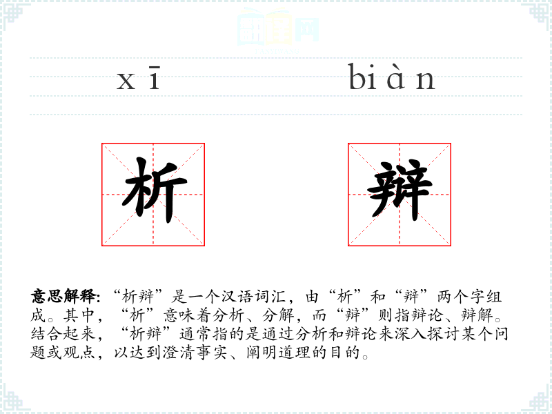 “析辩”这个词给人一种严谨、理性的感觉。它让我联想到逻辑严密的推理和深入的思考,是一种追求真理和智慧的过程。