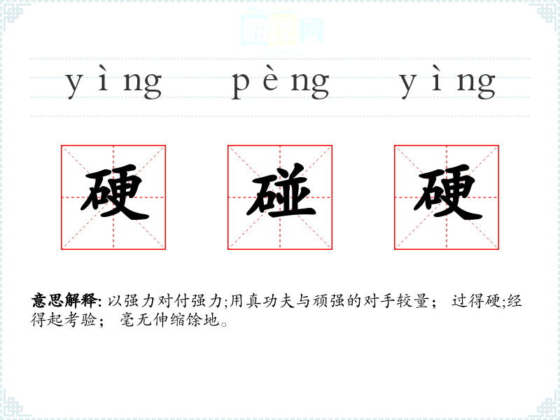 以强力对付强力;用真功夫与顽强的对手较量; 过得硬;经得起考验; 毫无伸缩馀地。