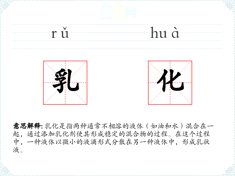 - 专业领域:在化学、食品科学和化妆品行业中,“乳化”是一个专业术语,用于描述特定的化学过程。