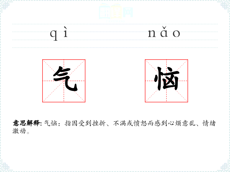 气恼:指因受到挫折、不满或愤怒而感到心烦意乱、情绪激动。