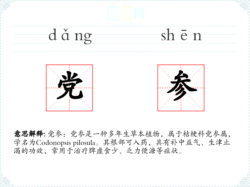 - 专业领域:在中医药领域,党参是一个重要的药材,其功效和使用方法有详细的记载和研究。