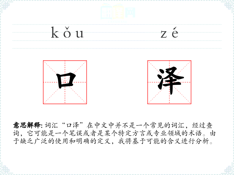 由于“口泽”不是一个标准词汇,对其的理解和应用可能非常有限。如果它确实存在,可能需要具体分析其使用环境和背景。