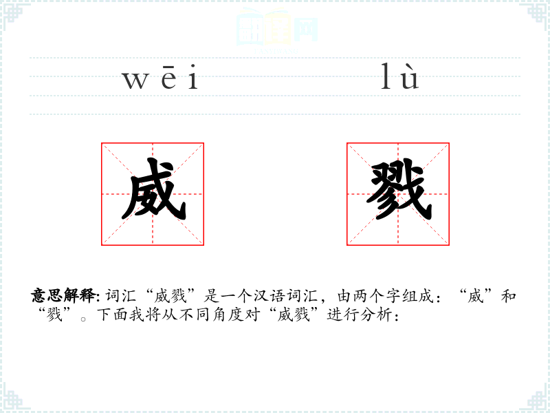 - 词源:“威”和“戮”都是古代汉语词汇,历史悠久。