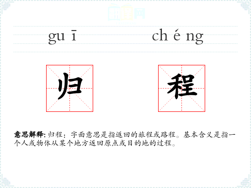 "归程"的意思解释、归程是什么意思由翻译网汉语词典查词提供。