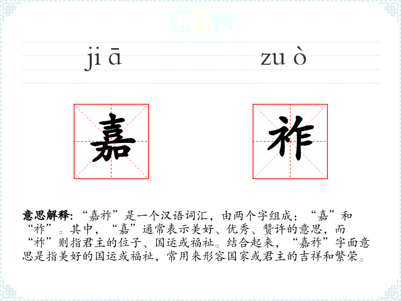 “嘉祚”是一个充满历史和文化内涵的词汇,它不仅代表了国家的繁荣和福祉,也反映了人们对美好生活的向往。在语言学*和表达中,理解和正确使用这样的词汇,能够丰富我们的语言表达,增强文化认同感。