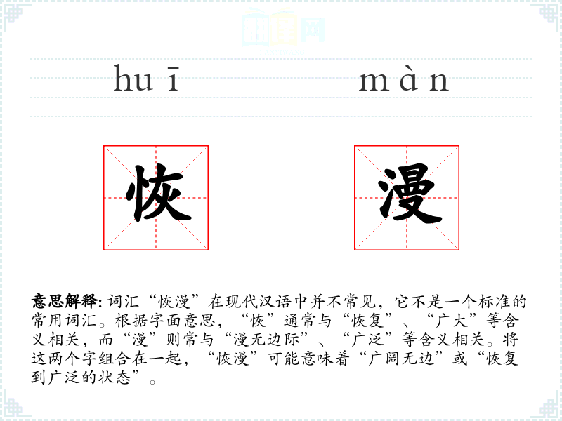 "恢漫"的意思解释、恢漫是什么意思由翻译网汉语词典查词提供。