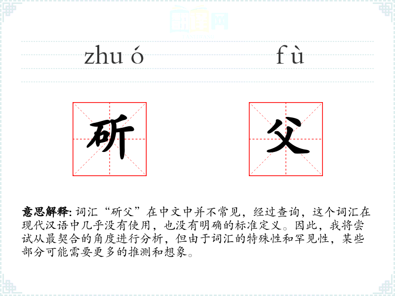 词汇“斫父”在中文中并不常见,经过查询,这个词汇在现代汉语中几乎没有使用,也没有明确的标准定义。因此,我将尝试从最契合的角度进行分析,但由于词汇的特殊性和罕见性,某些部分可能需要更多的推测和想象。