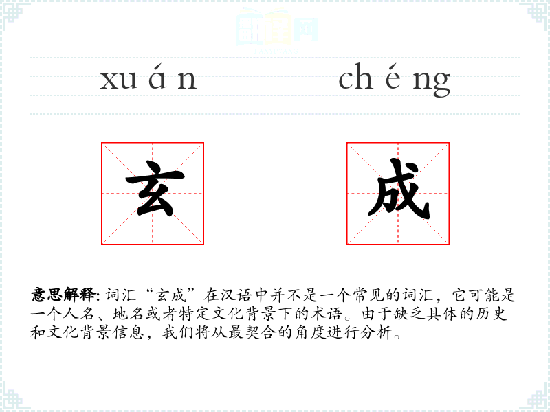 由于“玄成”不是一个常用词汇,它在不同语言或文化中的对应词汇及其使用情况可能不明确。