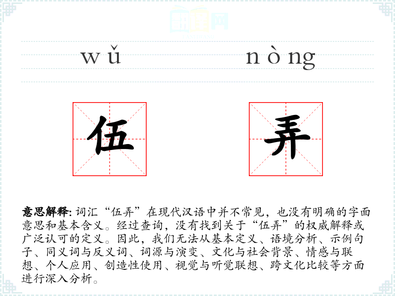 "伍弄"的意思解释、伍弄是什么意思由翻译网汉语词典查词提供。