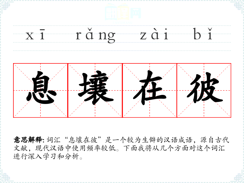 词汇“息壤在彼”是一个较为生僻的汉语成语,源自古代文献,现代汉语中使用频率较低。下面我将从几个方面对这个词汇进行深入学*和分析。