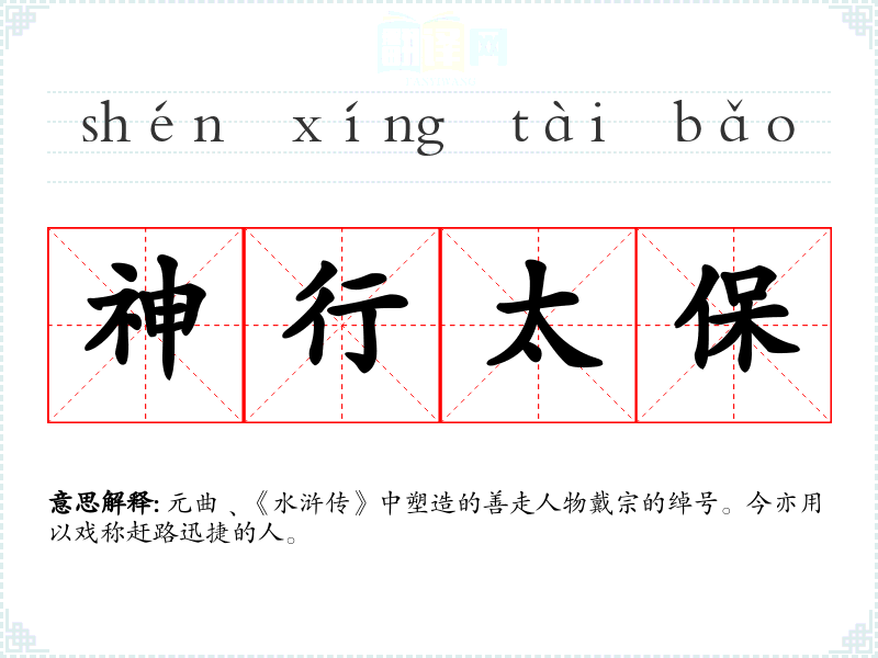 "神行太保"的意思解释、神行太保是什么意思由翻译网汉语词典查词提供。
