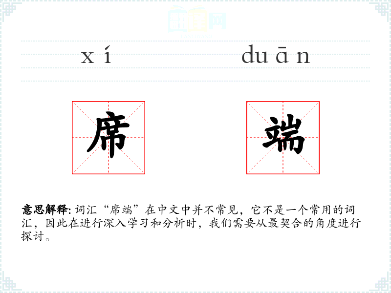 词汇“席端”在中文中并不常见,它不是一个常用的词汇,因此在进行深入学*和分析时,我们需要从最契合的角度进行探讨。