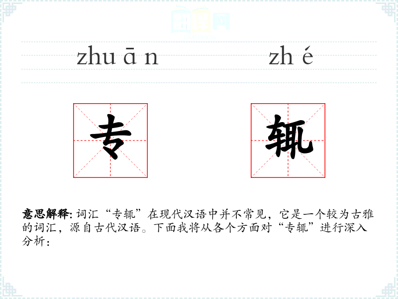 词汇“专辄”在现代汉语中并不常见,它是一个较为古雅的词汇,源自古代汉语。下面我将从各个方面对“专辄”进行深入分析: