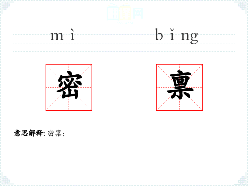 - 词源:密禀一词源于古代汉语,其中“密”指秘密,“禀”指报告或告知。
