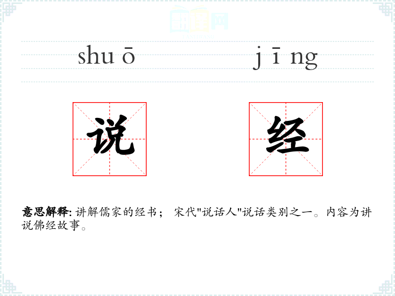 讲解儒家的经书; 宋代"说话人"说话类别之一。内容为讲说佛经故事。