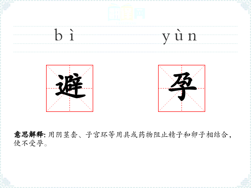 用阴茎套、子宫环等用具或药物阻止精子和卵子相结合,使不受孕。