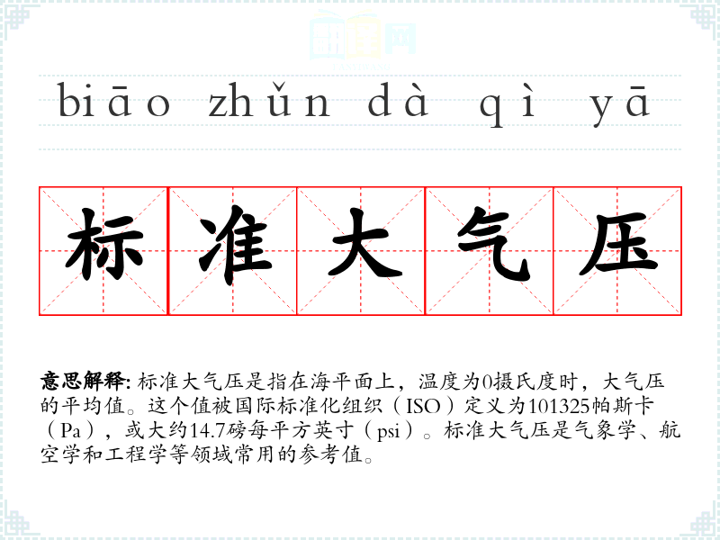 "标准大气压"的意思解释、标准大气压是什么意思由翻译网汉语词典查词提供。
