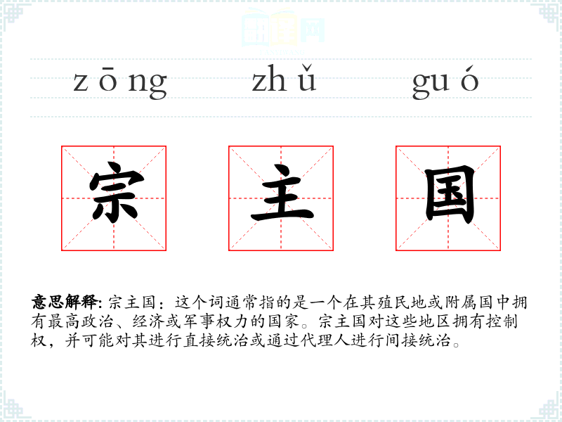 - 专业领域:在国际法、历史学和政治学中,宗主国是一个重要的概念,用于分析国家间的关系和权力结构。