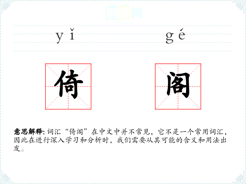 词汇“倚阁”在中文中并不常见,它不是一个常用词汇,因此在进行深入学*和分析时,我们需要从其可能的含义和用法出发。