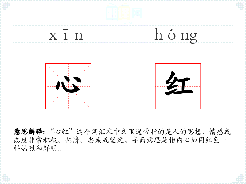 在**文化中,“红”色象征着吉祥、繁荣和革命。因此,“心红”在特定的社会和政治背景下,如文化大革命期间,被广泛用来形容那些对革命事业忠诚的人。