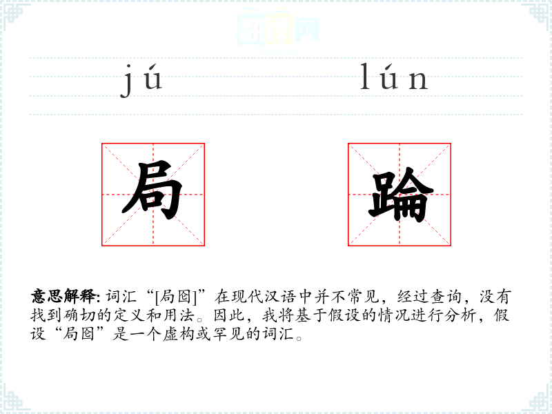 词汇“[局囵]”在现代汉语中并不常见,经过查询,没有找到确切的定义和用法。因此,我将基于假设的情况进行分析,假设“局囵”是一个虚构或罕见的词汇。