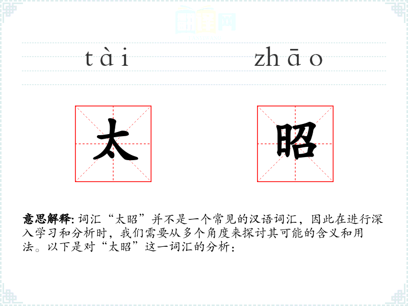 由于“太昭”不是一个标准词汇,我们可以尝试从字面意思来解释: