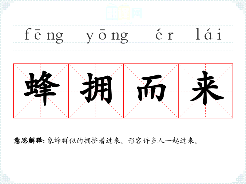 象蜂群似的拥挤着过来。形容许多人一起过来。