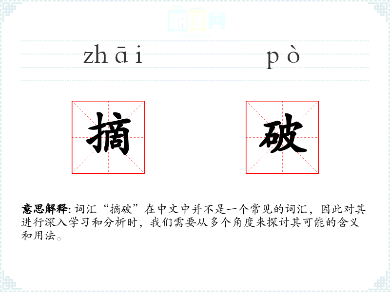 词汇“摘破”在中文中并不是一个常见的词汇,因此对其进行深入学习和分析时,我们需要从多个角度来探讨其可能的含义和用法。