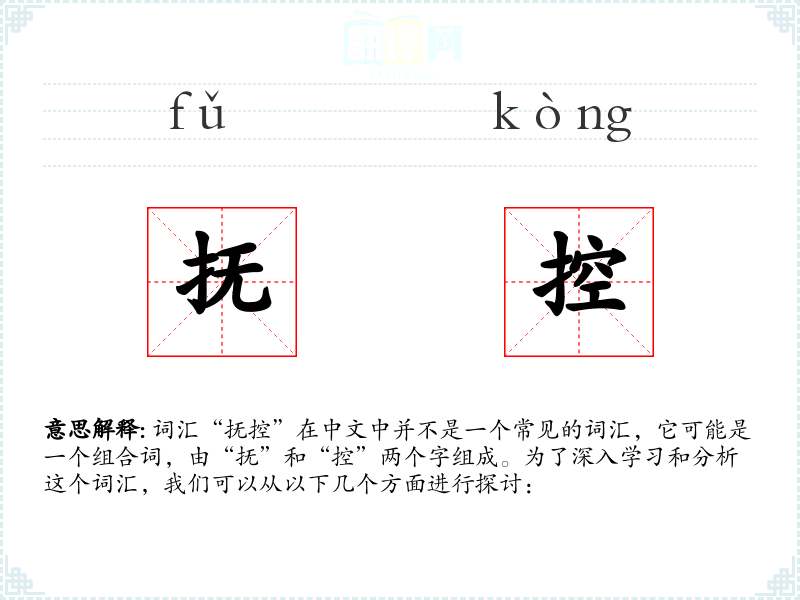 词汇“抚控”在中文中并不是一个常见的词汇,它可能是一个组合词,由“抚”和“控”两个字组成。为了深入学习和分析这个词汇,我们可以从以下几个方面进行探讨: