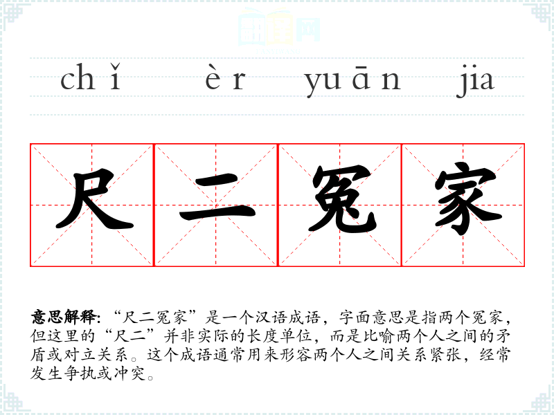 在日常生活中,我们可能会遇到类似“尺二冤家”的情况,比如与家人、朋友或同事之间的矛盾。通过理解和运用这个成语,我们可以更好地描述和处理这些复杂的人际关系。