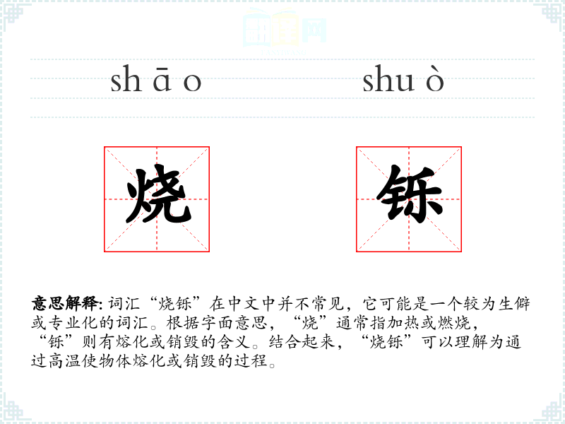 - 词源:“烧”和“铄”都是古代汉语词汇,分别表示加热和熔化。