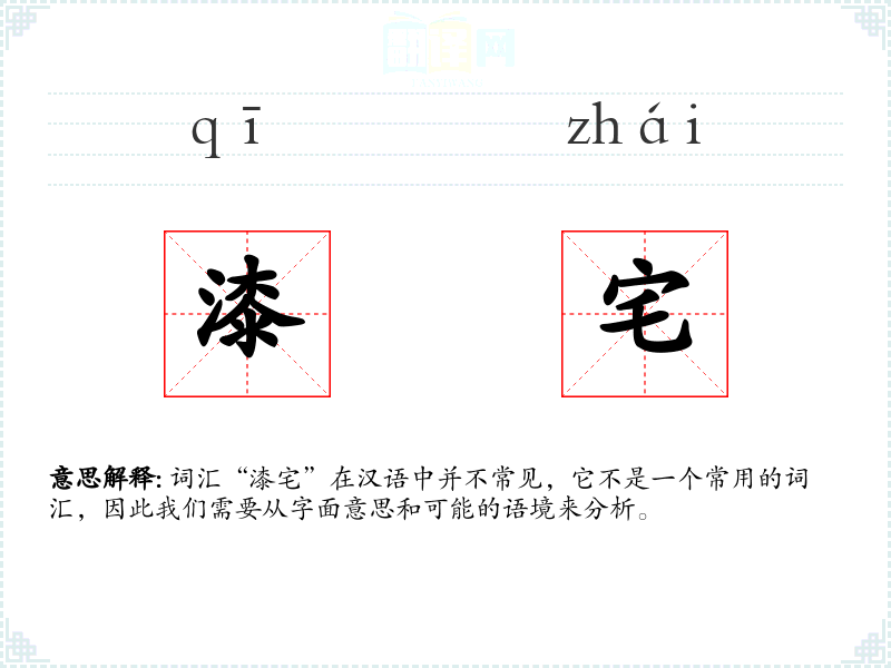词汇“漆宅”在汉语中并不常见,它不是一个常用的词汇,因此我们需要从字面意思和可能的语境来分析。