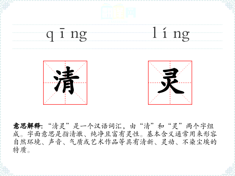 “清灵”作为一个复合词,其构成部分“清”和“灵”在古代汉语中已有使用。随着时间的推移,这两个字结合在一起,形成了具有特定含义的词汇,用以形容那些具有清新和灵性特质的事物。